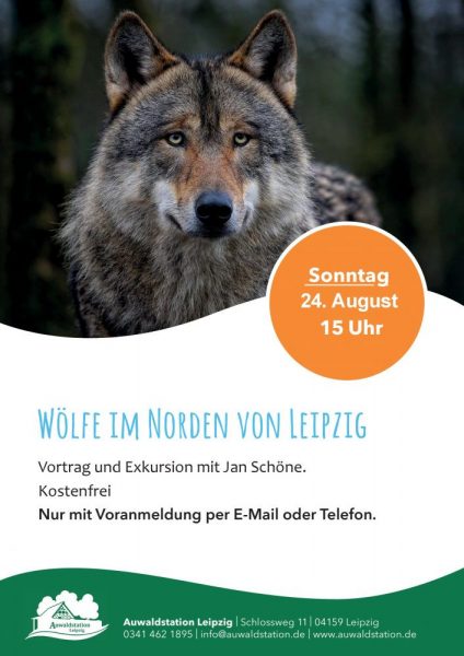 Am kommenden Sonntag, dem 24. August 2025 gibt es ab 15 Uhr die Gelegenheit in einem Vortrag und einer Exkursion mit Jan Schöne viel Wissenswertes über Wölfe und ihr Vorkommen im Leipziger Norden zu erfahren.